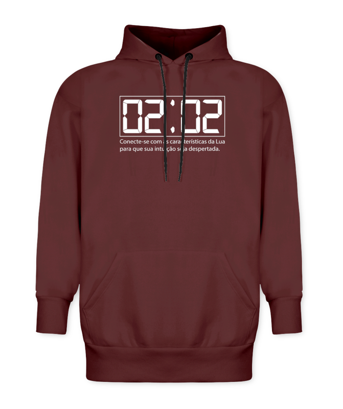 Horas Iguais 02:02 - Bordô - Moletom Canguru 2 Cabos
