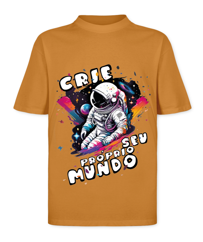 Astronauta, Crie Seu Próprio Mundo - Laranja - Camiseta Streetwear Oversized