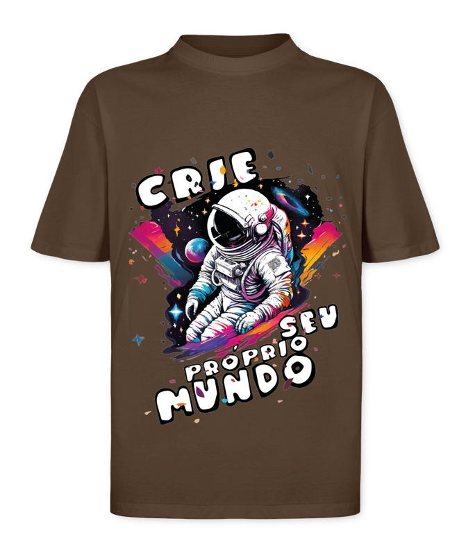Astronauta, Crie Seu Próprio Mundo - Marrom - Camiseta Streetwear Oversized