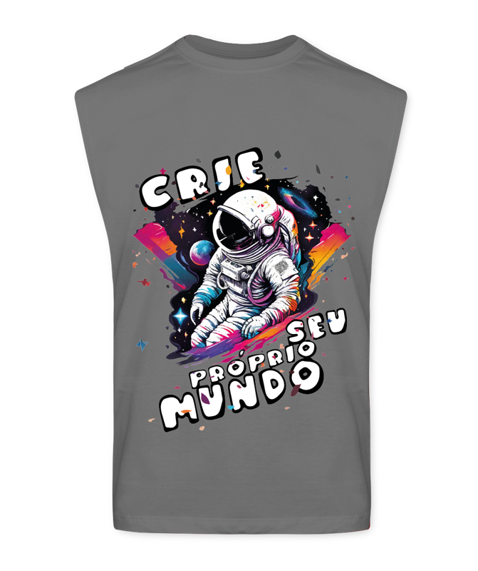 Astronauta, Crie Seu Próprio Mundo - Cinza - Regata Básica Machão