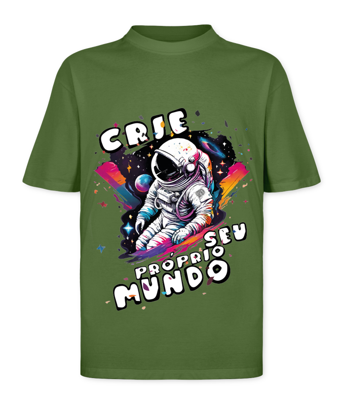 Astronauta, Crie Seu Próprio Mundo - Verde Oliva - Camiseta Streetwear Oversized