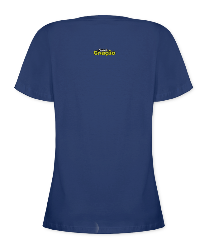Camiseta Babylook, na cor Azul Marinho, com estampa do Planeta da Criação grande na frente!