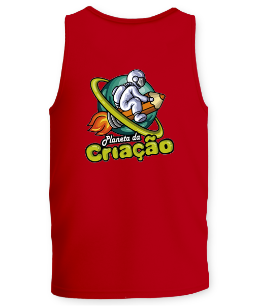 Regata Streetwear, na cor Vermelha, com estampa do Planeta da Criação grande nas costas.