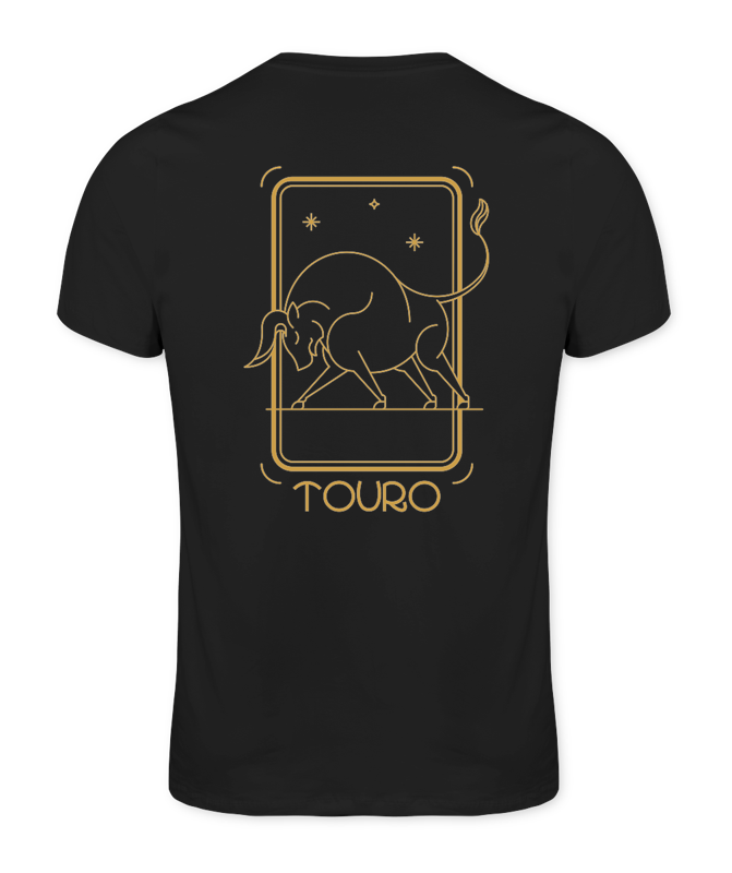 Camiseta Tradicional Premium na cor Preta, com estampa na frente e costas, do Signo de Touro. Frente 8x8, Costas 30x50.
