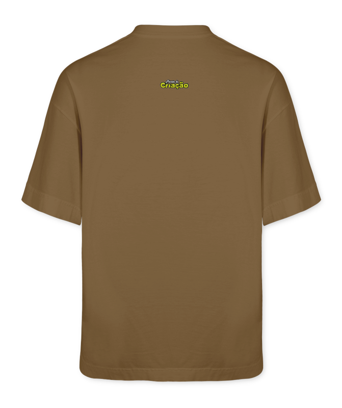 Camiseta Streetwear Tubular na cor Marrom, com estampa grande na frente (40x60cm) de um Astronauta, com a Frase: Crie Seu Próprio Mundo!