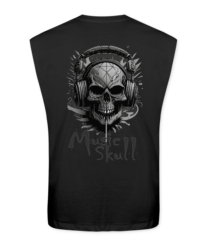 Music Skull - Preta - Frente E Verso - Regata Básica Machão
