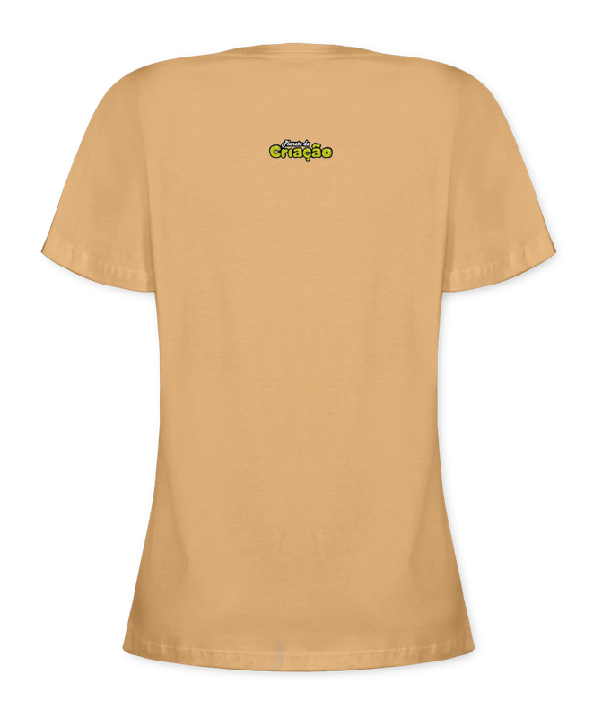 Babylook na cor Laranja, com estampa grande na frente (21x30cm) de um Astronauta, com a Frase: Crie Seu Próprio Mundo!