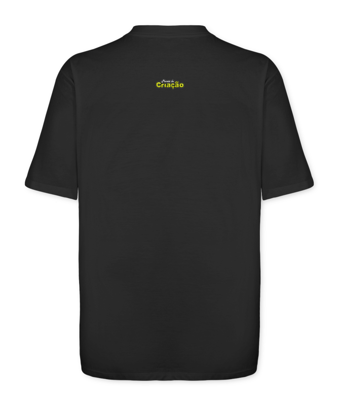 Camiseta Streetwear Oversized na cor Preta, com estampa grande na frente (40x60cm) de um Astronauta, com a Frase: Crie Seu Próprio Mundo!