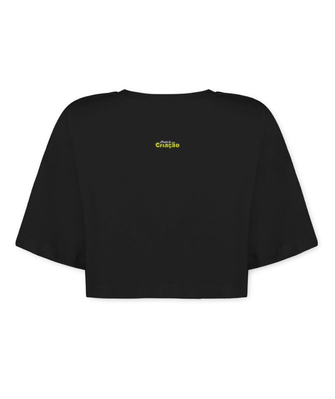 Cropped Streetwear, na cor Preta, com estampa na frente do Planeta da Criação.
