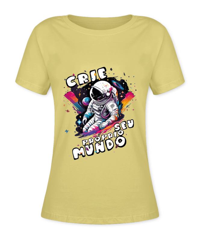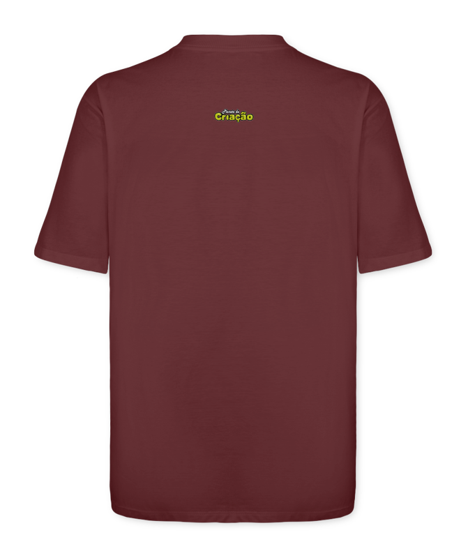 Camiseta Streetwear Oversized na cor Bordô, com estampa grande na frente (40x60cm) de um Astronauta, com a Frase: Crie Seu Próprio Mundo!