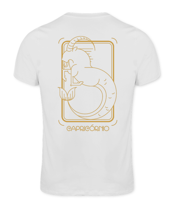 Camiseta Tradicional Premium cor Branca estampa na frente e costas Signo Capricórnio.