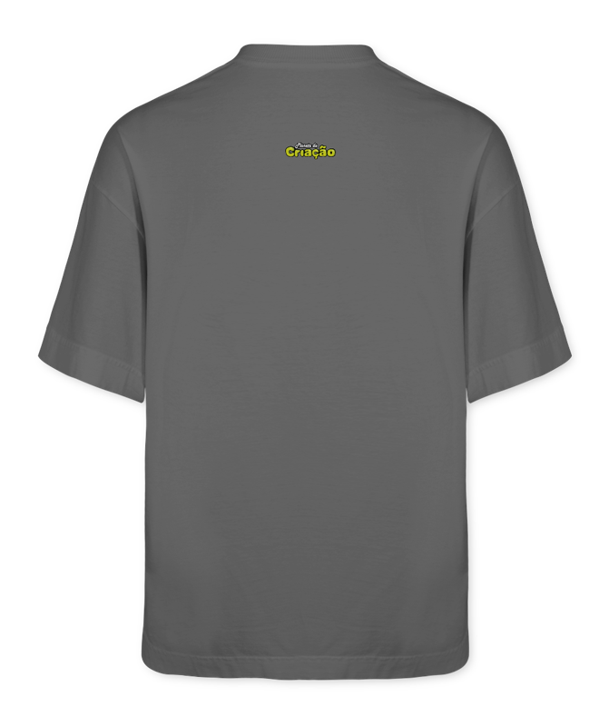 Camiseta Streetwear Tubular na cor Cinza, com estampa grande na frente (40x60cm) de um Astronauta, com a Frase: Crie Seu Próprio Mundo!