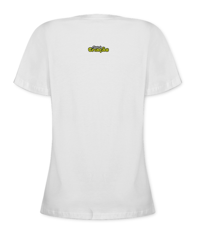 Camiseta Babylook, na cor branca, com estampa do Planeta da Criação grande na frente!