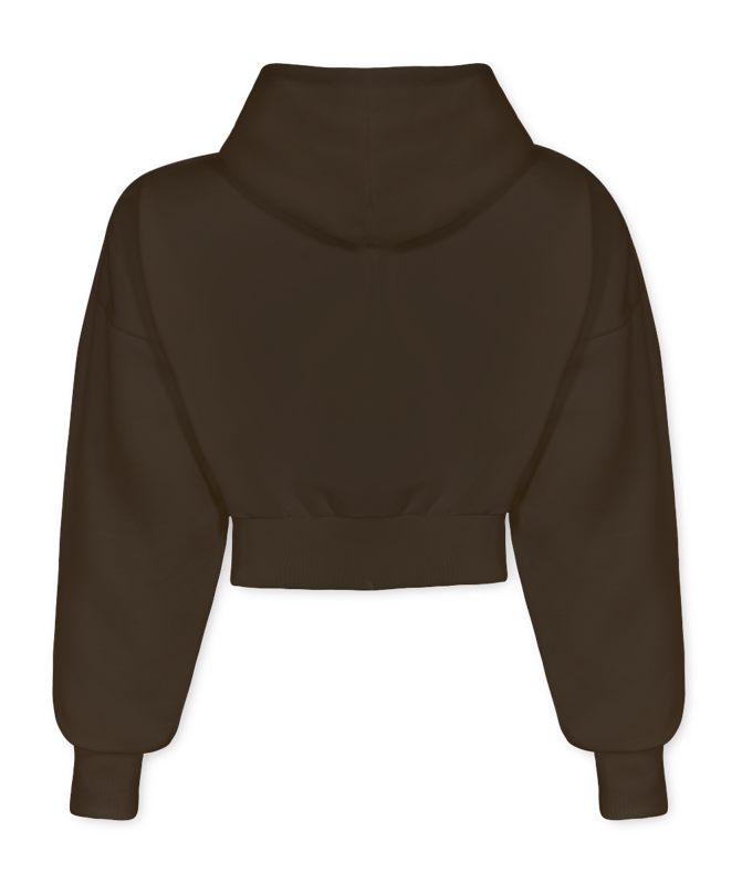Cropped Moletom 2 Cabos, na cor Marrom, com estampa na frente do Planeta da Criação.