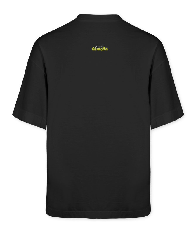 Camiseta Streetwear Tubular na cor Preta, com estampa grande na frente (40x60cm) de um Astronauta, com a Frase: Crie Seu Próprio Mundo!