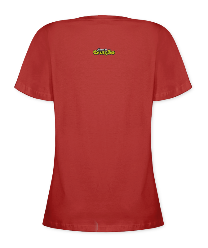 Camiseta Babylook, na cor vermelha, com estampa do Planeta da Criação grande na frente!