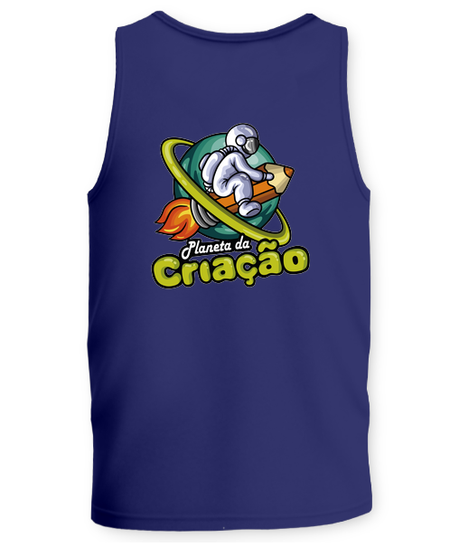 Regata Streetwear, na cor Azul Marinho, com estampa do Planeta da Criação grande nas costas.