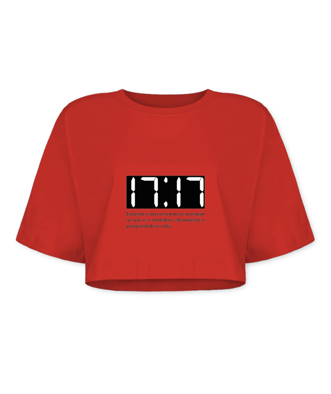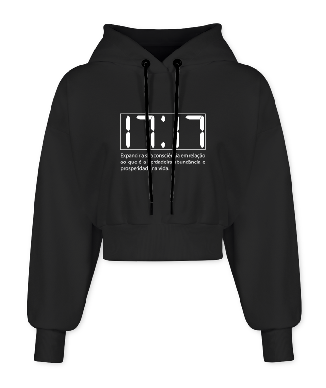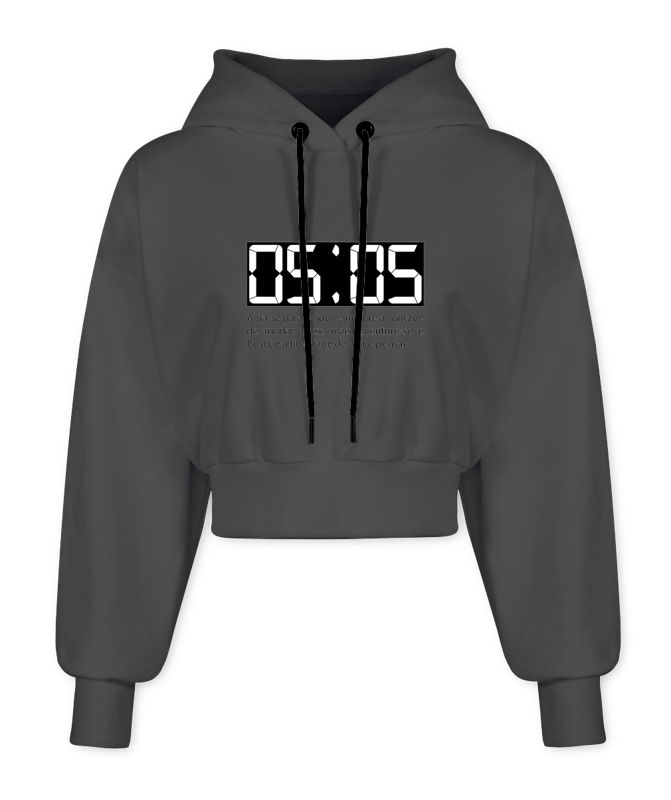 Cropped Moletom na cor Marrom, com estampa na frente e na manda das horas iguais, 11:11.