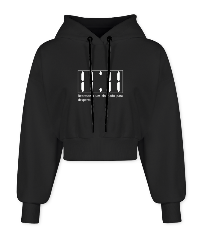 Cropped Streetwear na cor Branca, com estampa na frente 30x21. das horas iguais 13:13.