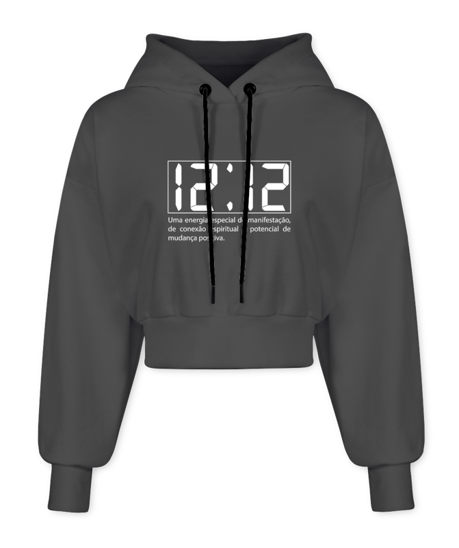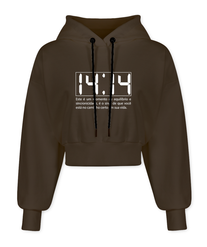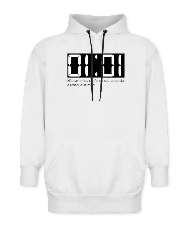 Moletom Canguru 2 Cabos, na cor Preta, com estampa na frente das Horas Iguais.