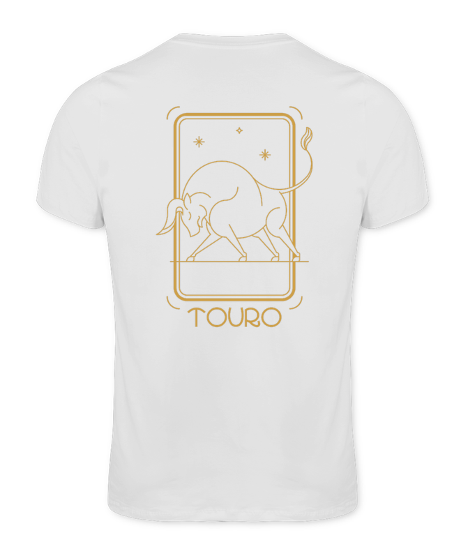 Camiseta Tradicional Premium na cor Branca, com estampa na frente e costas, do Signo de Touro. Frente 8x8, Costas 30x50.