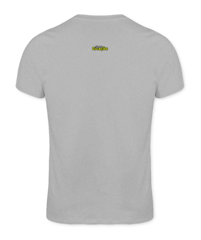 Camiseta Tradicional Premium, na cor Cinza Mescla, com estampa grande na frente.