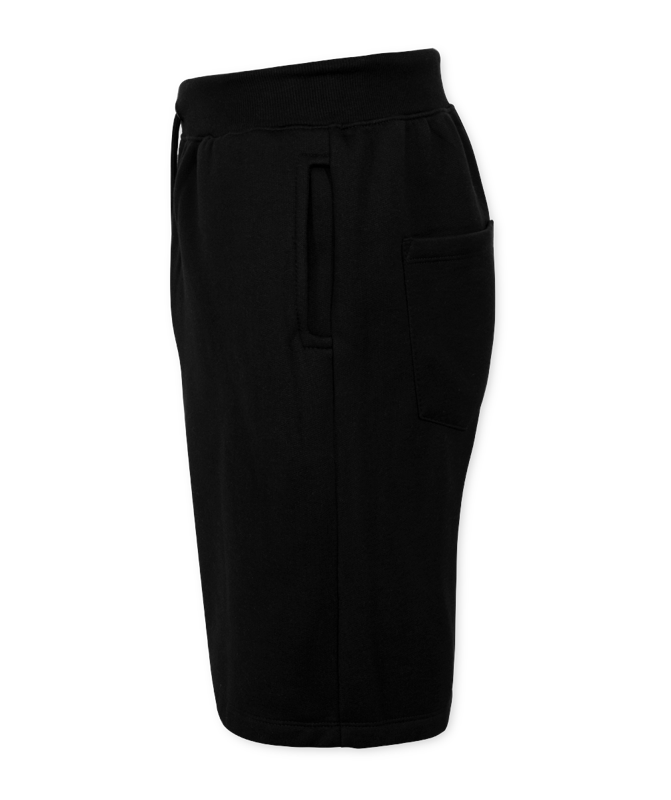 Bermuda de Moletom, na cor Preta, com a escrita do Planeta da Criação pequena.