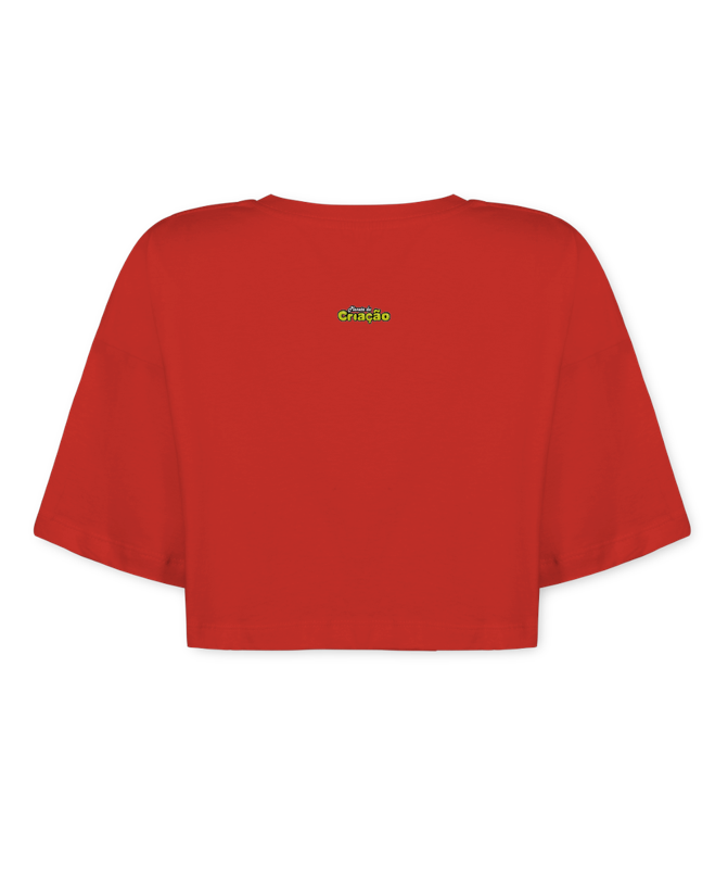 Cropped Streetwear, na cor Vermelho, com estampa na frente do Planeta da Criação.