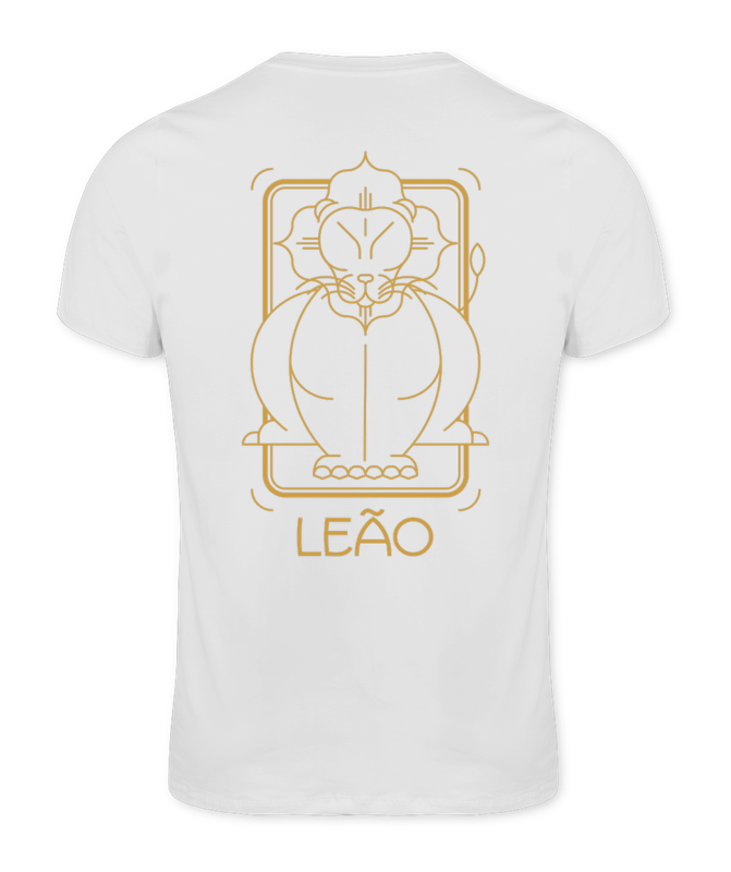 Camiseta Tradicional Premium cor Branca estampa na frente e costas Signo Leão .