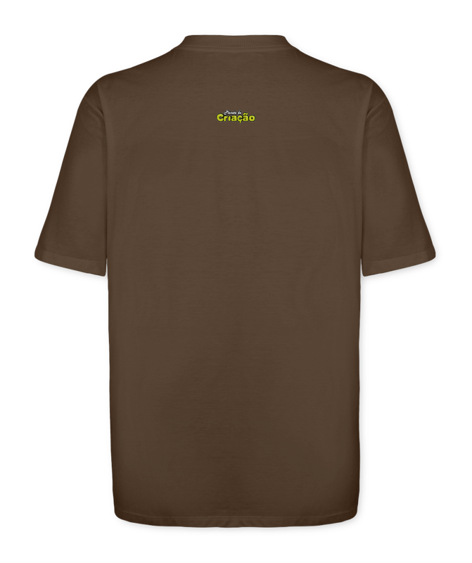 Camiseta Streetwear Oversized na cor Marrom, com estampa grande na frente (40x60cm) de um Astronauta, com a Frase: Crie Seu Próprio Mundo!