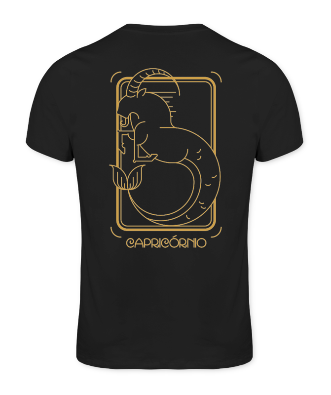 Camiseta Tradicional Premium cor Preta, com estampa na frente e costas Signo Capricórnio.