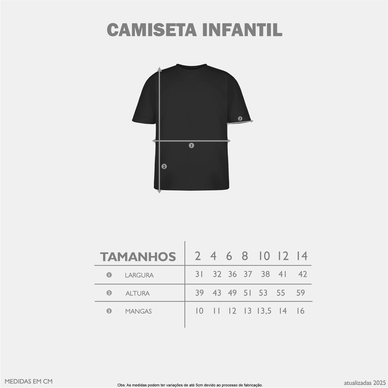Camiseta Infantil linha Kids confeccionada em tecido de meia malha, fio 30.1, cardada, com 100% algodão e gramatura 165 gramas. Essa malha, se encaixa perfeitamente em qualquer biotipo, possui gola com reforço, mangas curtas e gola rebatida. Ideal para pais exigentes que se preocupam com os mínimos detalhes.