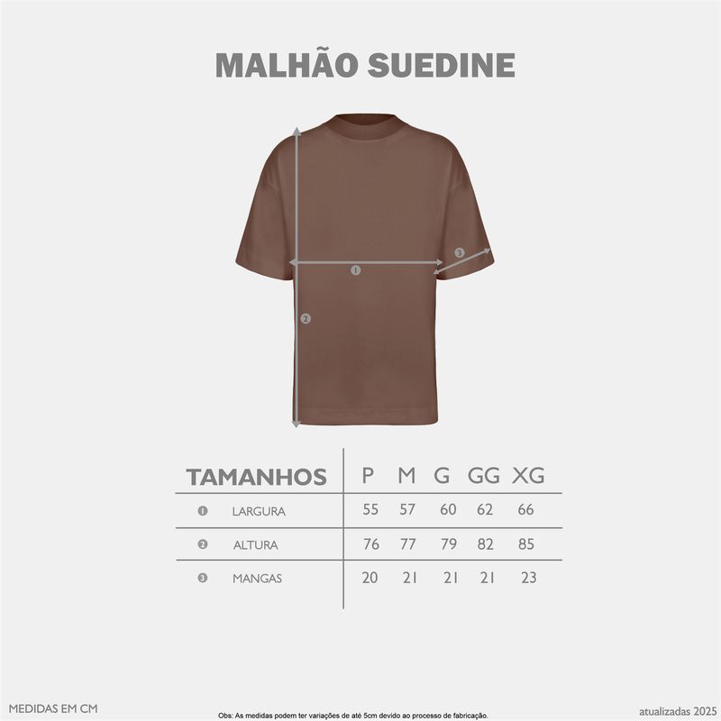 Camiseta Malhão Suedine Oversized Descubra a união perfeita entre robustez e sofisticação com a Camiseta Malhão Suedine Oversized. Confeccionada em malha com gramatura de 230 g/m², essa peça foi desenvolvida para oferecer qualidade e durabilidade excepcionais, ideal para o dia a dia urbano. Qualidade Superior: A malha Suedine, aliada à alta gramatura, garante um toque macio e resistência, mantendo a forma mesmo após múltiplas lavagens. Modelagem Oversized: Com um caimento perfeito, a camiseta proporciona conforto sem abrir mão de um estilo moderno e despojado, pensado para o público urbano. Detalhe Exclusivo: A gola canelada 2×1 com 3,5 cm, confere um toque refinado e contemporâneo, destacando o design único e inovador da peça. Versatilidade no Estilo: Ideal para compor desde looks casuais até produções mais ousadas, a Camiseta Malhão Suedine Oversized se torna um item indispensável para quem valoriza autenticidade e personalidade no vestuário. Eleve seu guarda-roupa com a Camiseta Malhão Suedine Oversized e experimente o equilíbrio ideal entre conforto, durabilidade e design contemporâneo, feita especialmente para os amantes do estilo urbano.