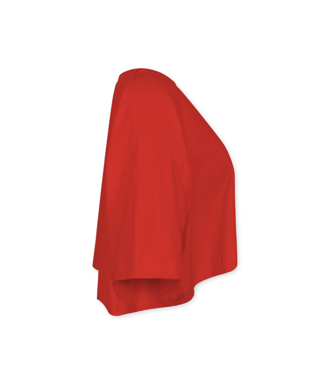Cropped Streetwear na cor vermelha, com estampa na frente 30x21. das horas iguais 05:05.