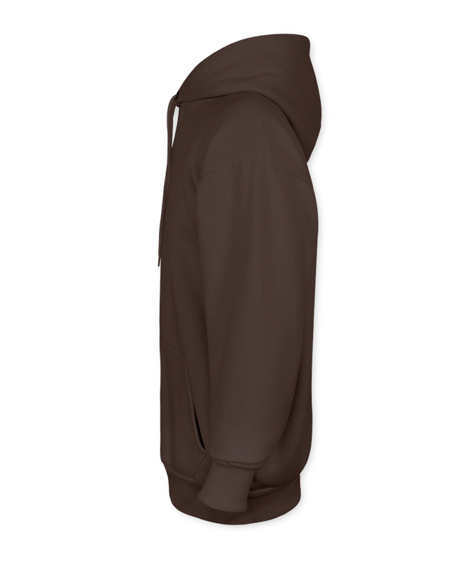 Moletom Canguru de 3 cabos, na cor Marrom, com estampa grande na frente.